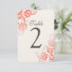 Classy Customizable Coral Wedding Table Card Numbers with a beautiful Floral print. Collection created by Colourful Designs Inc. Copyright 2014.
