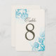 Classy customizable Ombre Teal Wedding Table Card Numbers with a beautiful Floral print. Collection created by Colourful Designs Inc. Copyright 2014.