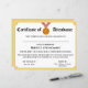 Design features a gold-colored trim with image of a gold medal award ribbon at top center. Title is displayed in traditional font for a certificate. All text is customizable. Back color matches that of front trim.