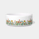 This is a heavy, durable bowl decorated with Tibbies of many colors, the perfect size for hungry/thirsty Tibs. The design is interesting and printing clear.