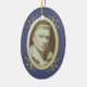 Dark Blue with Gold Leaves Oval Photo Ornament Create a cherished memory of someone special with a customizable photo ornament. Designed especially for remembrance and memorial keepsakes, this ornament has a indigo blue color background with a gold look photo frame to which you can add a photo of your loved one. A leaf detail surrounds the frame. On the reverse is the text 'In loving memory' and customizable text boxes to add a name and dates. A lovely way to remember and celebrate a life. Available in a range of soft and classic shades for male or female memorials.