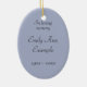Soft Blue with Silver Leaves Oval Photo Ornament Create a cherished memory of someone special with a customizable photo ornament. Designed especially for remembrance and memorial keepsakes, this ornament has a soft blue background with a silver look photo frame to which you can add a photo of your loved one. A silver leaf detail surrounds the frame. On the reverse is the text 'In loving memory' and customizable text boxes to add a name and dates. A lovely way to remember and celebrate a life. Available in a range of soft and classic shades for male or female memorials.