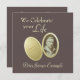 Gold Locket with Photo Memorial Card (Brown) Celebrate a life and remember a loved one with this attractive memorial card. The customizable text on the reverse of this invitation allows you to invite friends and relatives to join you in remembrance, whether at a wake, traditional funeral or living funeral. The front features an open gold locket on a chocolate brown background. Text engraved on the locket reads 'Always in our hearts'. It's easy to replace the placeholder picture with a photo of your own choice to create a personal keepsake of someone dear.