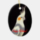 Original fine art design of a pied Cockatiel by illustrator/designer Carolyn McFann of Two Purring Cats Studio on a quality and customizable Christmas ornament for parrot lovers.