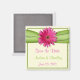 The text on this pink gerbera daisy save the date magnet is fully customizable. You can change it using the personalize option. For more extensive changes to the magnet, including changing the background color, font, font color, or font layout, choose the customize option. This is a great save the date magnet for a spring or summer wedding with a pink and green gerbera daisy theme. Simple, pretty, and cheerful. This magnet is currently customized for a wedding, but would also work great for a bridal shower, special birthday, anniversary, or garden party. All you need to do is change the wording. It would also make a great wedding favor if you changed the text to remove the words "save the date".