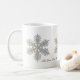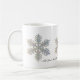 This design features faux glitter-look snowflakes on a light background with customizable text for you to add your name or other information. Or if you prefer, you can delete one or both text fields.