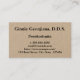 This traditional, customizable, and simple business card design could be used by a professional such as a prosthodontist, dental hygienist, dentist, or dental surgeon. The name, profession and contact details can be personalized.