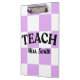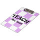Stay stylish and organized with this adorable purple checkered teacher clipboard! Featuring a trendy preppy design and bold “TEACH” lettering, this clipboard can be fully customized with your name perfect for adding a personal touch to your classroom essentials. Durable, functional, and cute, it’s ideal for daily use, lesson planning, grading, or walking the classroom in style. A perfect appreciation gift for teachers, student teachers, or back-to-school!