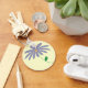 Customizable purple flower cartoon key chain. The yellow background can be easily changed to your favorite color. Great for everyone.