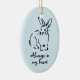 Add Your Bunny's Name to Reverse of this Keepsake Create a keepsake of a much-loved furry friend. This bunny memorial ornament shows an ink drawing of a sitting rabbit and has the slogan 'Always in my heart' (which can be changed to plural if required). You can add your own bunny rabbit's name to the reverse. The ornament is a soft blue shade.