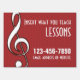 Insert your own information. Are you a piano, guitar, voice, trumpet, saxophone, clarinet (or other) teacher? The white text on red polka dotted background combined with the prominent treble clef will make for a yard sign that can clearly advertise that you are a teacher.