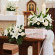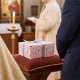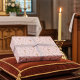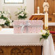 This personalized gift wrapping paper features a minimalist design with a handmade palm cross, inspired by Palm Sunday during Easter. It offers a customizable text field to include a name, event date, or personal details. The elegant gold and misty pink theme makes it ideal for baptisms, christenings, first communions, confirmations, and other special religious occasions.