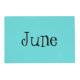 With this Customizable Retro Kitchen Laminated Placemat, you can have your pie and eat it, too. This kitschy, minimalist art drawing features a perfect 1950's housewife, in her mid century modern kitchen. The beautiful baker is wearing a flouncy, green dress and a white apron with red detailing. Not a hair on her blonde head is out of place. In one hand, she is holding the fruit of her labor--a gorgeous, lattice topped, fruit pie. One glance and you'll know that her flaky pie crusts are second to none. She is standing on an aqua and teal checkerboard floor, which is undoubtedly clean enough to eat off of. Against an aqua wall, we see teal cabinetry with aqua trim work, a red countertop, red drawer pulls, and black starburst accents. A red, starburst clock is hanging on the wall. To the side, there is a state of the art, white refrigerator with silver handles. At least, the fridge was state of the art in 1950's. Now, it's just plain dreamy! The opposite side of this fun placemat is aqua and can be personalized with the recipient's name. Whether you're Suzie Homemaker or simply have an affinity for all things vintage, you're sure to love this scrumptious slice of Americana.