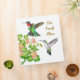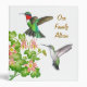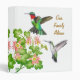 Original fine art design of Ruby Throated Hummingbirds and Columbines by artist Carolyn McFann on a customizable Avery binder for wild bird fans.