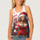 Women's All-Over Print Racerback Tank Top, White Piping, S