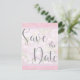 This customizable Save the Date Announcement template has a muted photograph of tiny pink flowers trimmed with transparent pink edges, copy is editable and customizable, just click the Personalize button to make this your own and congratulations, enjoy!