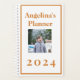 Customizable School planner design features, the name you provide in large, gold lettering above the word, "Planner" in same lettering along with the year on front cover. In center of front cover design, the photo you supply will be displayed. A graduation poem that may be changed, replaced or left as is located on back cover. Just below, the name of the graduating student is displayed with a graduation cap in top right corner of name. The graduation year, which is also customizable, appears in large gold lettering as background.