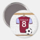Claret and Blue soccer jersey with soccer ball hanging in a changing room fully customizable with your own name and number. Great gift for any soccer player, soccer girl, soccer mom or soccer fan. We can make this product in any jersey color combination just contact us through the giftsbonanza store