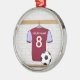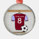 Claret and Blue soccer jersey with soccer ball hanging in a changing room fully customizable with your own name and number. Great gift for any soccer player, soccer girl, soccer mom or soccer fan. We can make this product in any jersey color combination just contact us through the giftsbonanza store