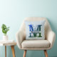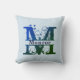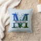 Fancy split 'M' monogram in blues and greens with silhouettes of fancy flourishes and butterflies. Add your own name as center text.