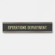 Modern Black And Gold Trendy Customizable Text Operations Department Template Long Door Sign Hanging Name Plate.