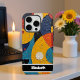 This vibrant phone cover showcases a heavily textured, impasto oil painting style, featuring bold, interlocking abstract shapes in a dynamic palette of yellows, blues, reds, oranges, white, and black. The artistic, tactile design adds a modern, striking flair to your device. A sleek black bar at the bottom offers personalization with a name like "Elizabeth"; if you don't want a name, you can remove it and any other elements you don't like from within the design tool, crafting a truly bespoke smartphone accessory.