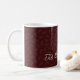 Green Pine Tree Branches on Deep Red are featured on this seasonal coffee mug. Dress up your kitchen for the holidays with festive mugs. Seasonal botanical design is great for enjoying your favorite beverage all year! "Tis the Season"! Customize with a name for the perfect Holiday Gift.