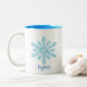 A customizable two-tone ceramic coffee mug with a snowflake design, ready for a personalized name text print.