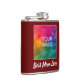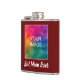 Well made flask, a little better than I had expected. Flask came in clear plastic box which gave it a nice presentation when I took it out of the zazzle packaging. Image is not printed on flask but on sticker. Don't know how this will hold up I haven't used it yet. This would make a Great gift! I plan to purchase more for friends! Cheers. I thought a little brighter than computer. Very crisp, writing wasn't