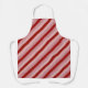 Great color and even though I ordered the kid size, it covers well enough to use during the holidays. I am not a big woman and prefer a shorter apron. I stand 5"6" and the length of the garment goes to mid-thigh. The tie straps fit well at my waist and even though there is no neck strap adjustment, the opening is plenty big enough. I am happy with the size and fit. I am sharing my apron with my 10 year old grandson, too! The color is vibrant and looks good, as shown on the website. The stitching looks strong and reinforced. Photographed is front side and back side of the apron, reinforced straps and coloring. My phone camera may not be the best at showing the details.