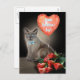 Cat behind a bouquet of roses, looking at a heart-shaped balloon that says "Happy Valentine's Day!" (feel free to change the text)