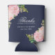 Customizable Wedding Beer Cooler with pink peonies and a navy blue background. See entire collection.