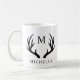Customizable White And Black Deer Antler Monogram Coffee Mug