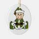 A baby dressed in a green elf suit on an ornament you can easily customize with your own text before ordering.