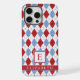 Customizable White Blue Red Argyle Pattern iPhone Case
