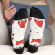 A white pattern-based sock design with cat illustrations having Christmas outfit and Santa Hats. Great for cozy Christmas moments. You can customize the name.