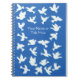 A pretty Spiral Notebook to personalize, with white doves on a bright blue background, from a handpainted paper collage design by Judy Adamson.