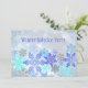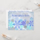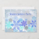 Winter Solstice Holiday Party Invitation featuring snowflakes in blue with customizable text details on a solid light gray back. All text fully customizable.