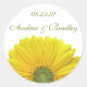 The text on this yellow gerbera daisy wedding favor sticker is fully customizable. You can change it using the personalize option. For more extensive changes to the sticker, including changing the background color, font, font color, or font layout, choose the customize option. This is a great favor sticker for a spring or summer wedding with a green and yellow gerbera daisy theme. Simple, pretty, and cheerful. This sticker is currently customized for a wedding, but would also work great for a bridal shower, special birthday, anniversary, or garden party. All you need to do is change the wording.