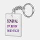 Customizable funny zodiac sign Taurus. Stylized graphic illustration with symbols and meanings. Perfect keychain for birthday. Matching Birthday greeting card, mug and shirt.