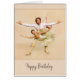 You can personalize this gorgeous artwork of ballet dancers to create a special greeting for a relative or friend. The ballerina wears a beautiful pale gold tutu dress with a tiara, and her dance partner is dressed as a prince in boots and an embroidered shirt. The lovely couple are in the impressive 'fish dive' pose, where the female dancer balances on the knee of her male partner while he stretches out his arms. This is an original artwork by InkArabesque, recreating the soft, romantic look of art pastels. All text is customizable and the card can be used for an occasion of your choice (not just birthdays).