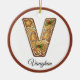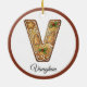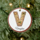 Customize Christmas Gingerbread Letter V Monogram Ceramic Ornament