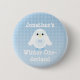 Personalize Birthday Boy Winter Onederland Blue button with snow flakes, cute little owl and text 'Someone's Winter One-derland' button badge.