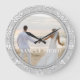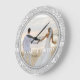 Great price for a very nice product. Arrived a day early - unheard of these days. The outside gold area has a little more orange tone to it than shown in the picture. Great packing so product can't get damaged. I used the same packing to forward the clock to my brother and sister-on-law for the 50th wedding anniversary. Printing was just as expected - lovely!