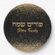 Customize Hebrew Happy Purim Elegant Gold Glitter Paper Plates
