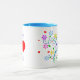 Let Hedwig Know you are thinking about her with style and flair. This cup with the flowing folk-art flowers dotted with cute hearts and a larger "We *heart* you" on the backside is reminiscent of seventies style art and would make the perfect birthday gift. It features a dainty design by ilovecuttables and text that can be customized. Very colorful and pretty to look at and use to enjoy coffee or tea (or any beverage).