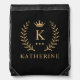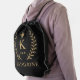 Customize Name & Initial Black White Gold Monogram Drawstring Bag