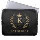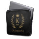 Customize Name & Initial Black White Gold Monogram Laptop Sleeve