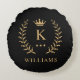 Customize Name & Initial Black White Gold Monogram Round Pillow