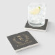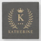 Customize Name & Initial Black White Gold Monogram Stone Coaster